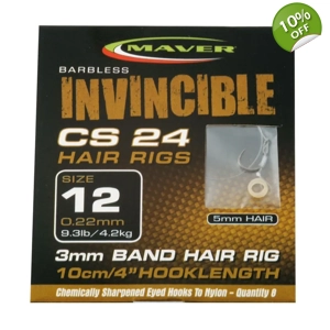 Invincible - CS24 Pack of 8 Band Hair Rig / Spike Hair Rig / Speedy Stop Barbless Hooks
